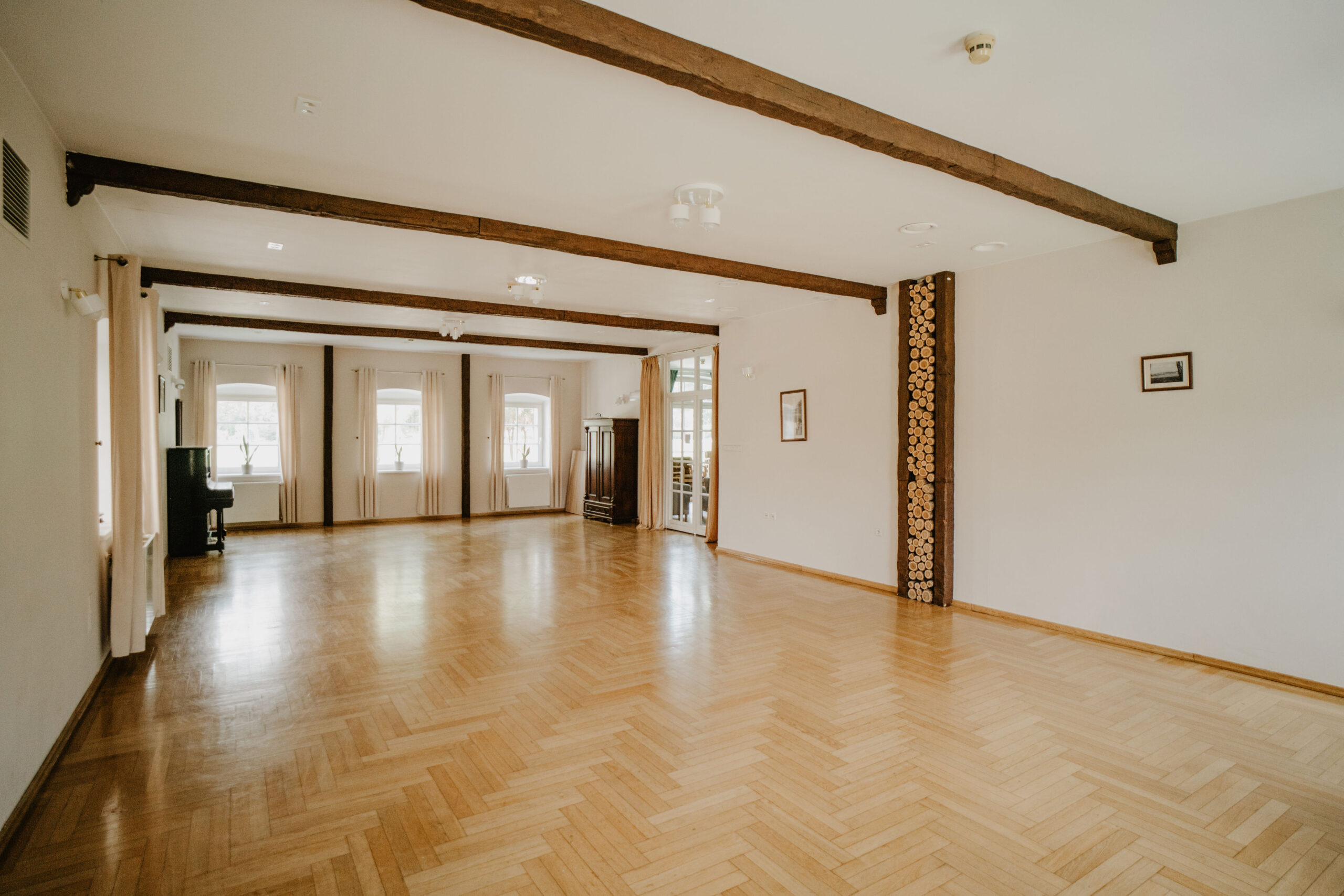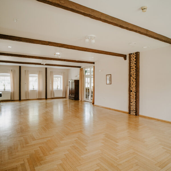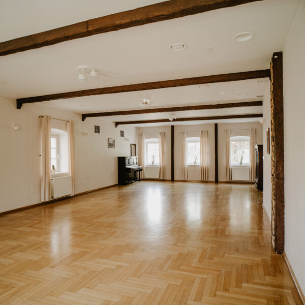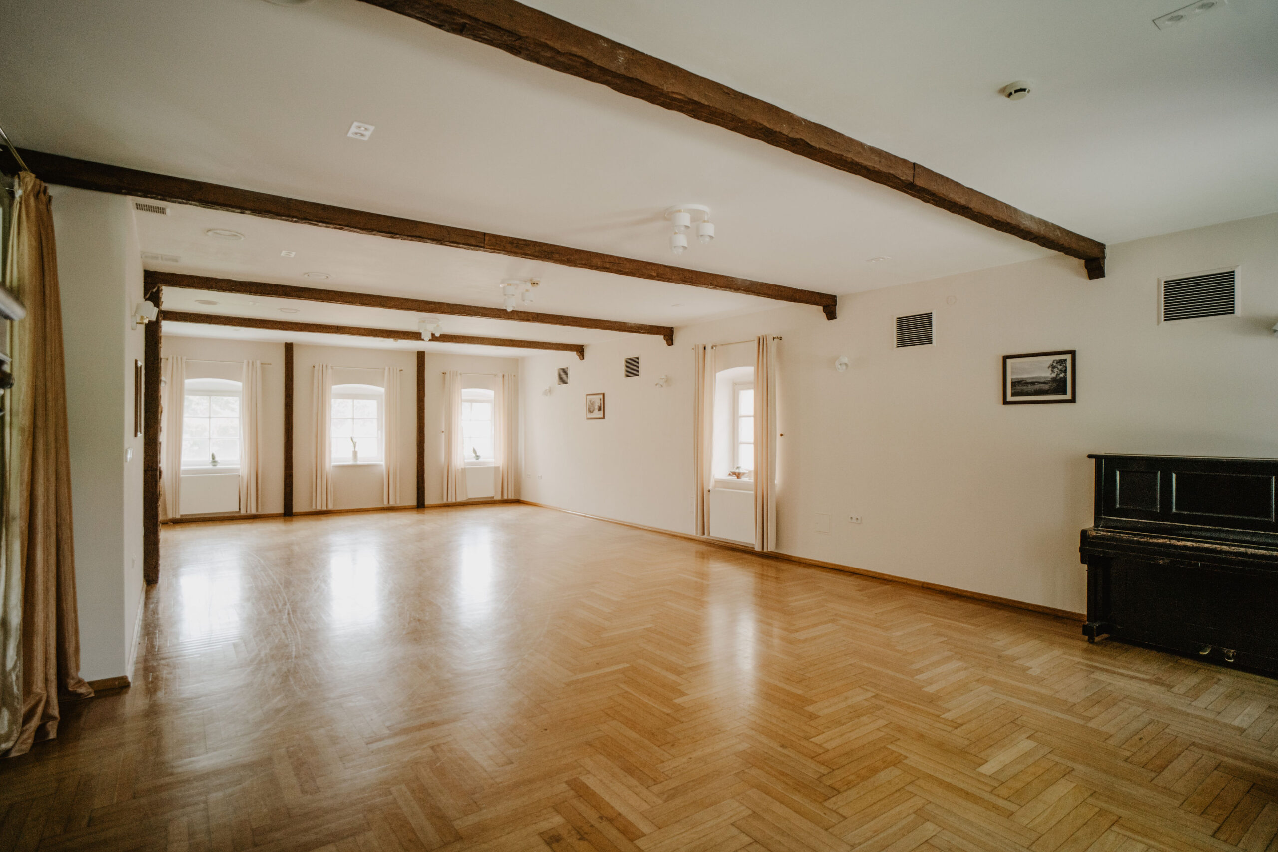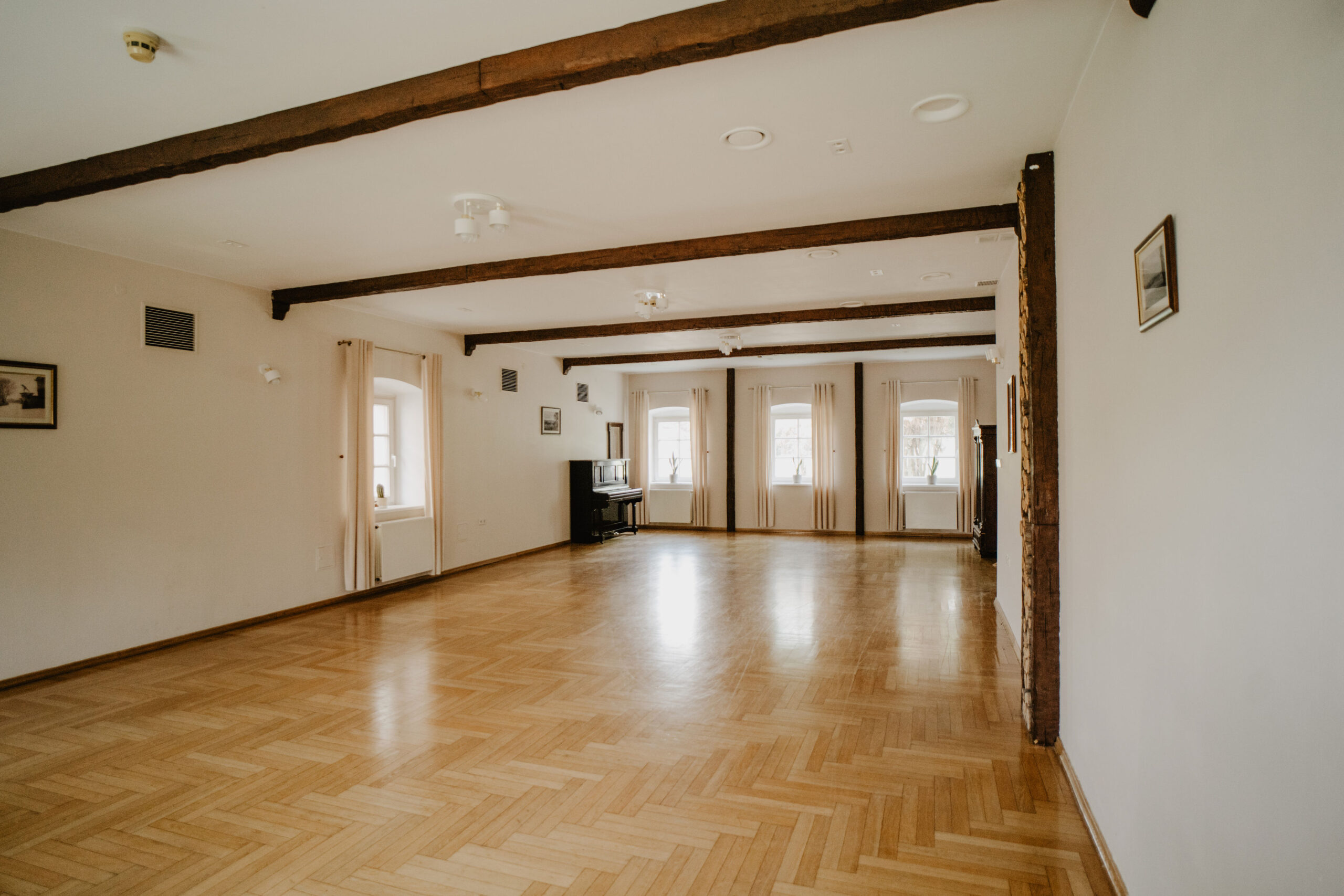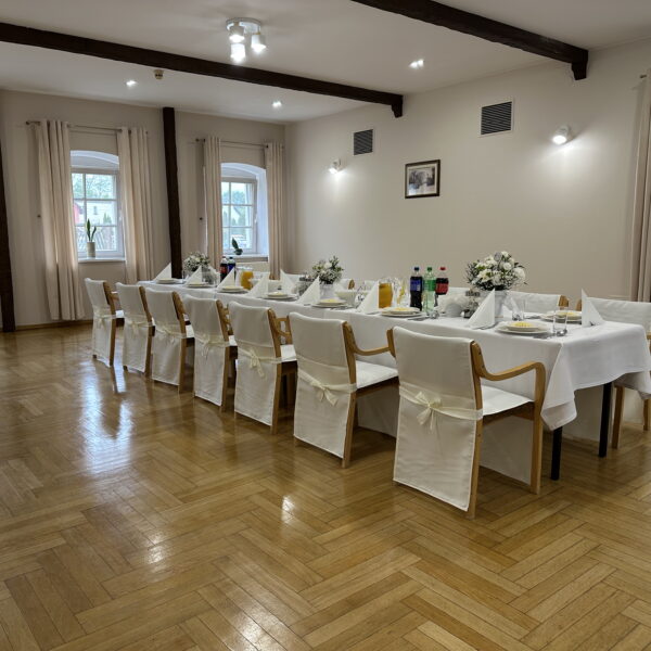 Sala Klubowa na parterze Spichlerza to kameralna przestrzeń konferencyjno-bankietowa, idealna do organizacji wydarzeń dla mniejszej liczby gości – szkoleń, konferencji, świątecznych spotkań pracowniczych i imprez okolicznościowych w gronie rodziny i przyjaciół (wesel, chrztów, komunii, urodzin czy styp). Charakterystyczne belki stropowe, drewniana podłoga, antyki oraz pianino tworzą niepowtarzalny klimat tej przestrzeni. Ustawienie stołów i krzeseł, jak również elementy potrzebne do organizacji konferencji (rzutnik, ekran i nagłośnienie) dostosujemy do potrzeb Twojego wydarzenia. Wejście do sali przez lobby bezpośrednio z dziedzińca.