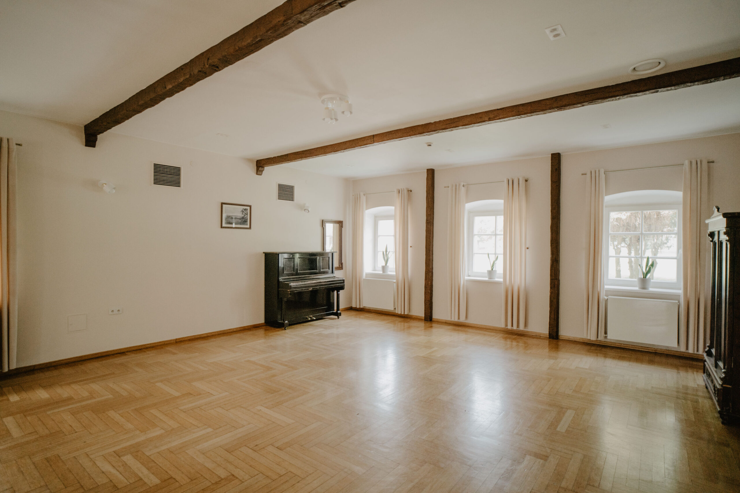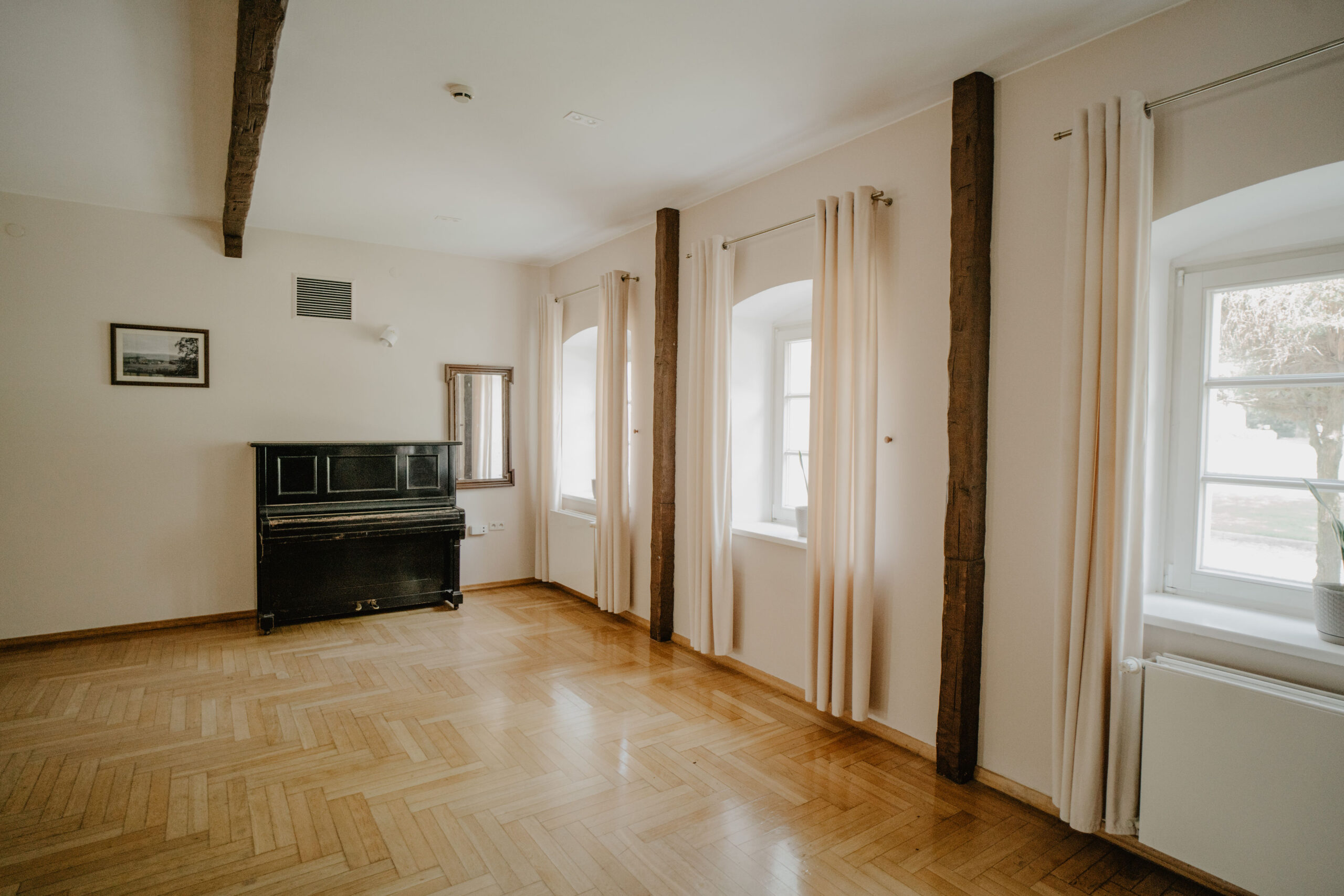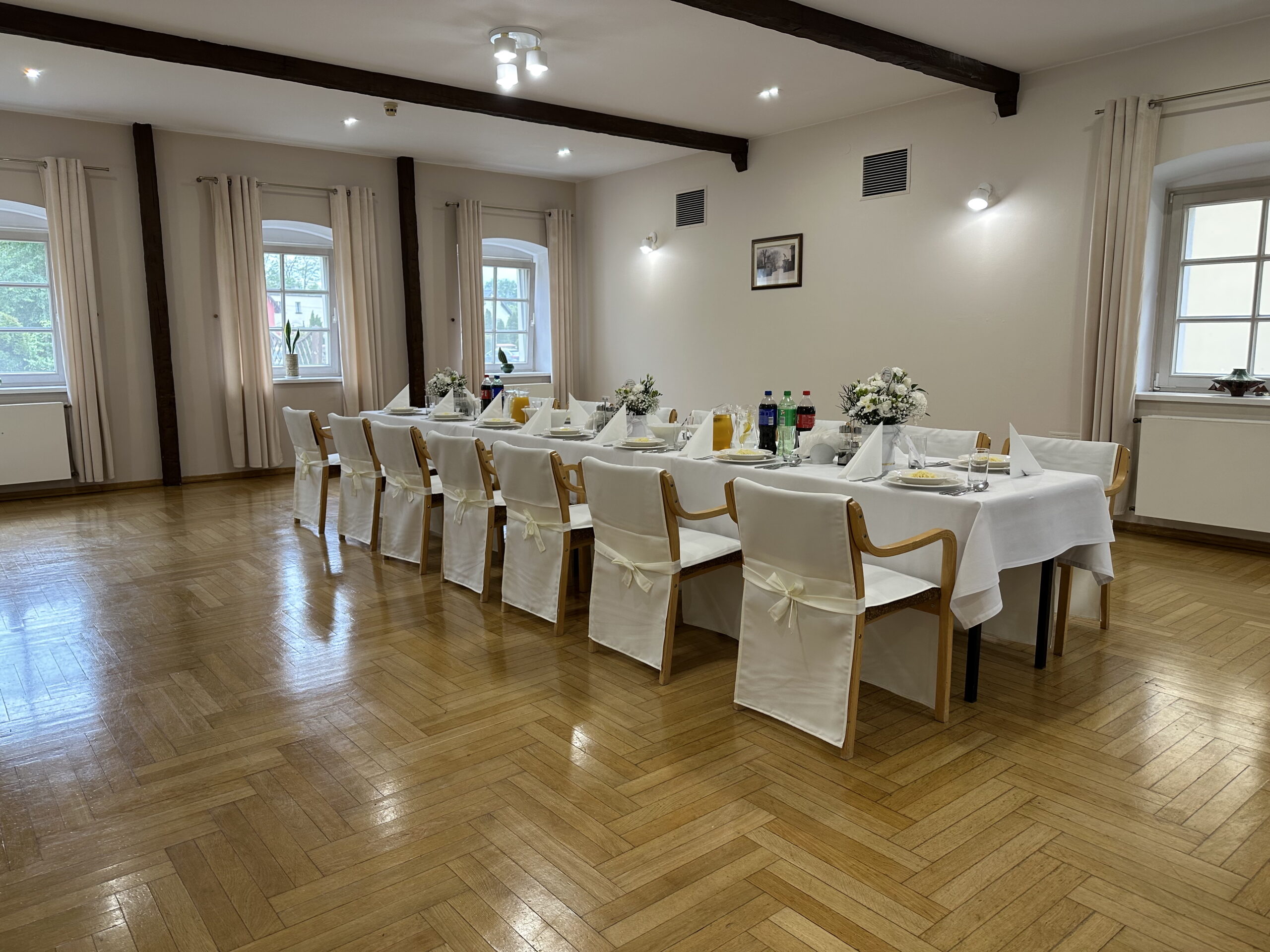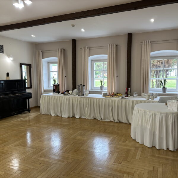 Sala Klubowa na parterze Spichlerza to kameralna przestrzeń konferencyjno-bankietowa, idealna do organizacji wydarzeń dla mniejszej liczby gości – szkoleń, konferencji, świątecznych spotkań pracowniczych i imprez okolicznościowych w gronie rodziny i przyjaciół (wesel, chrztów, komunii, urodzin czy styp). Charakterystyczne belki stropowe, drewniana podłoga, antyki oraz pianino tworzą niepowtarzalny klimat tej przestrzeni. Ustawienie stołów i krzeseł, jak również elementy potrzebne do organizacji konferencji (rzutnik, ekran i nagłośnienie) dostosujemy do potrzeb Twojego wydarzenia. Wejście do sali przez lobby bezpośrednio z dziedzińca.